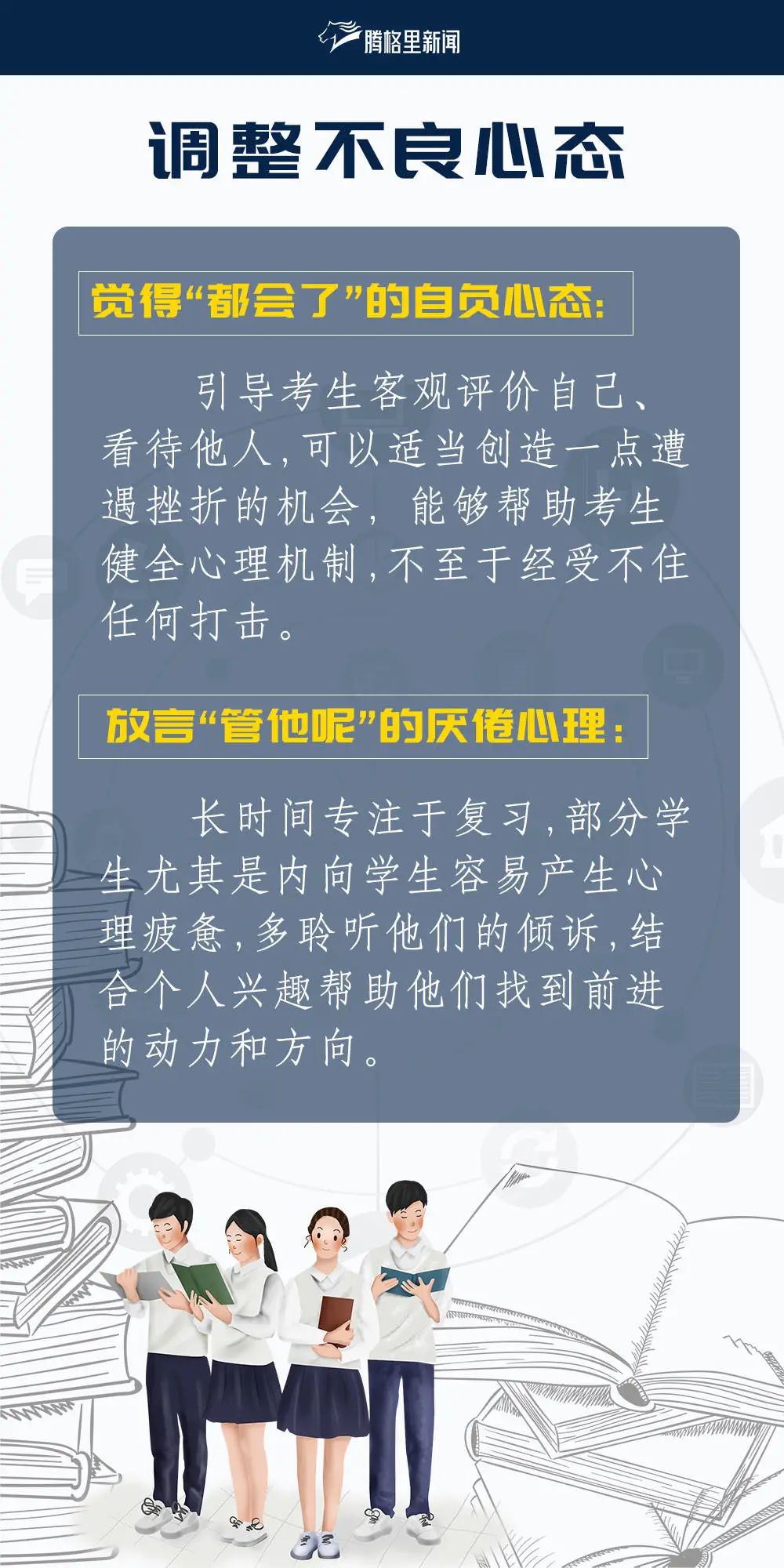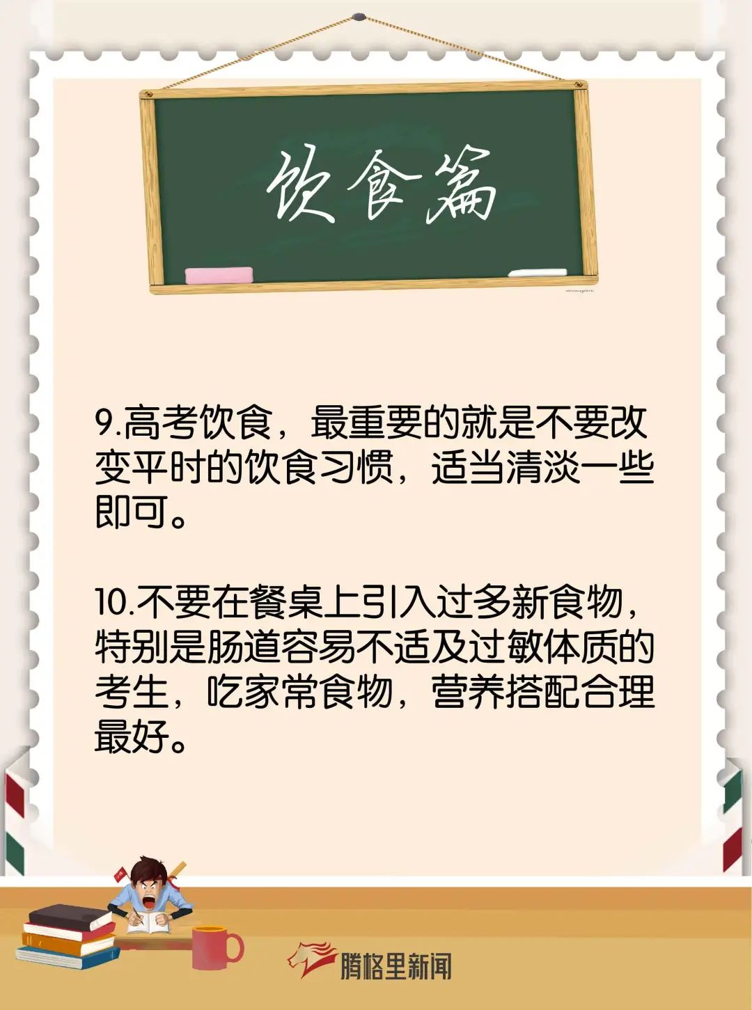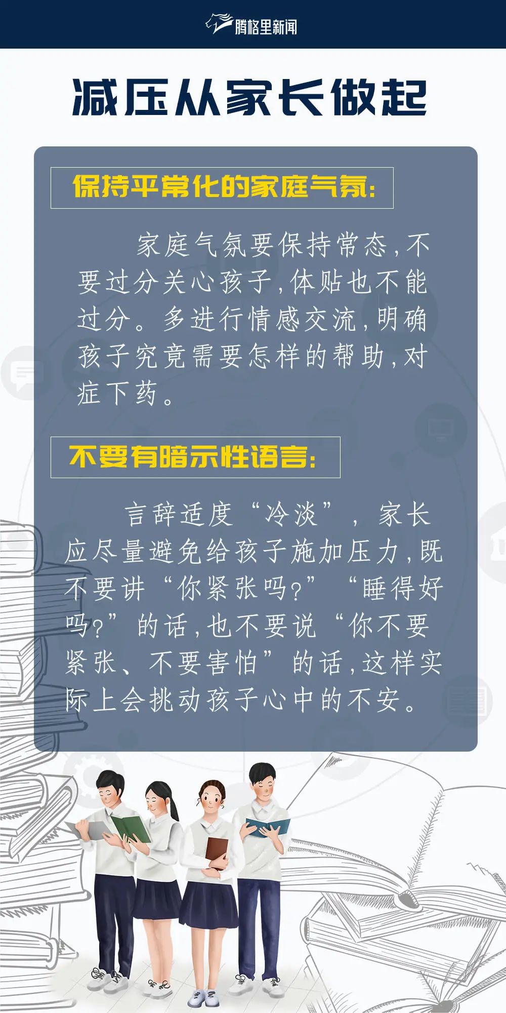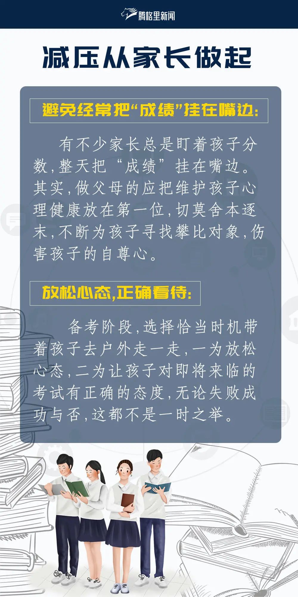 腾格里小编为大家分别整理了给家长和考生们的备考建议、减压方法、考前注意事项及饮食安排,助力2021级考生冲刺高考!