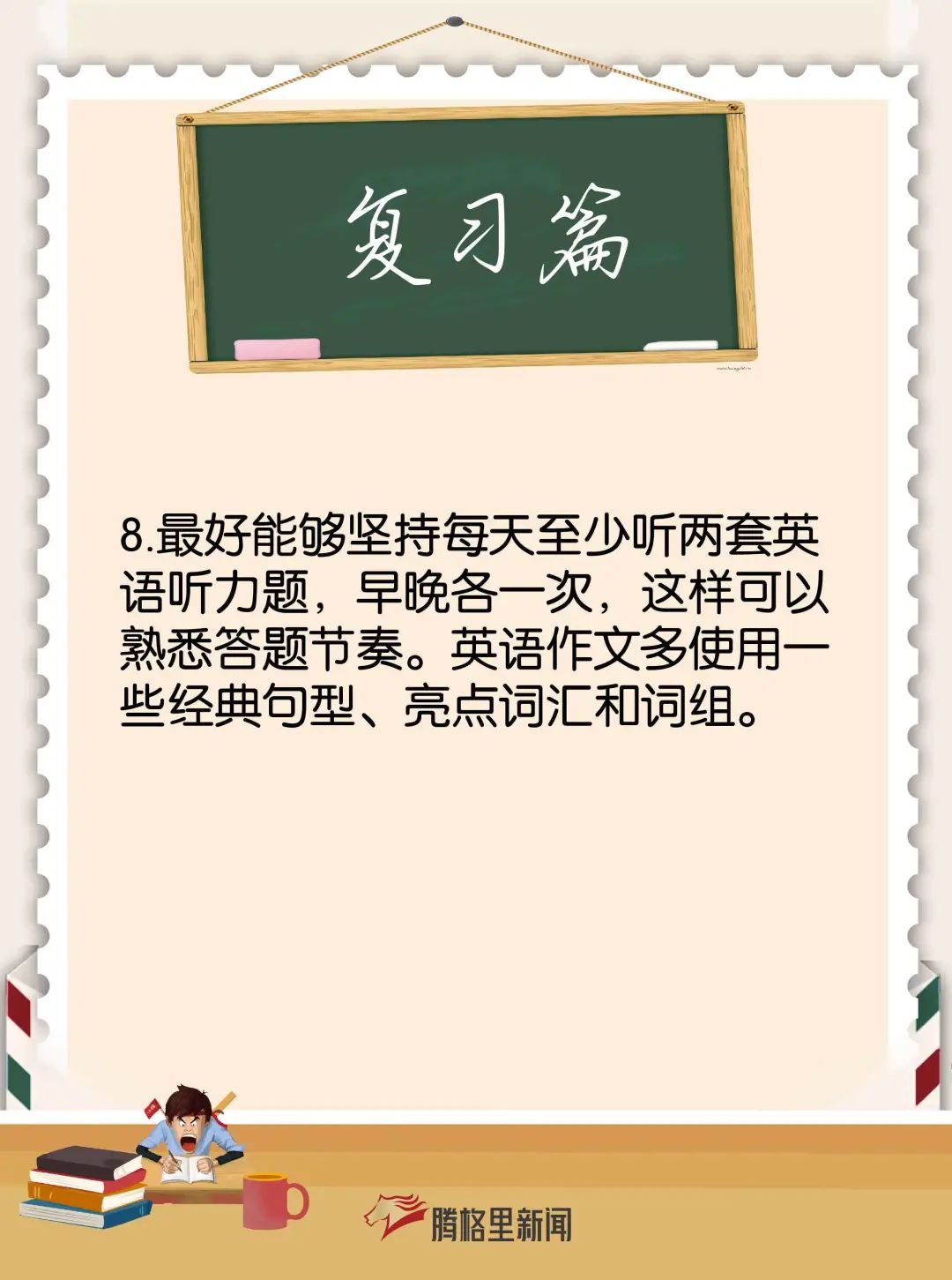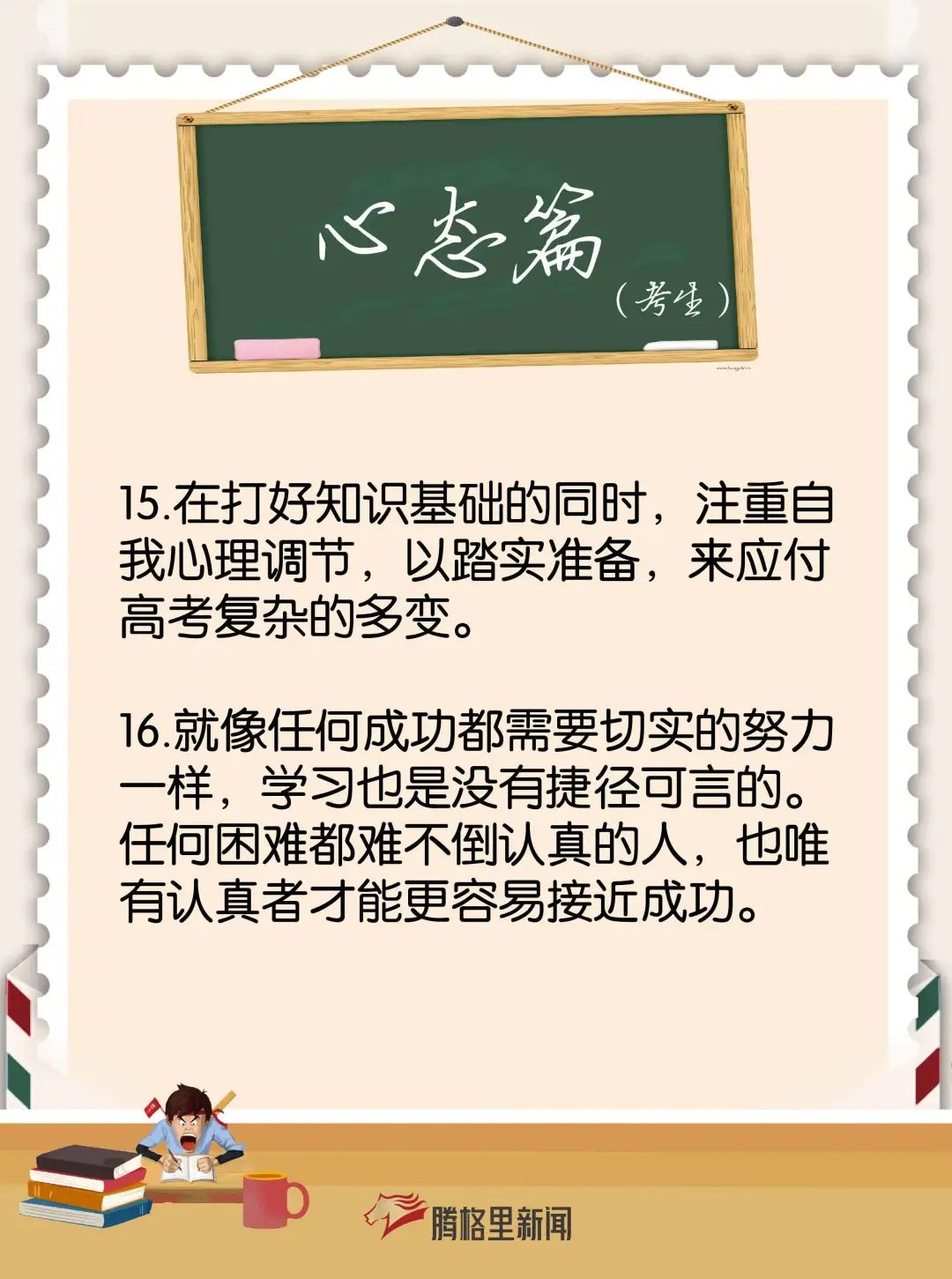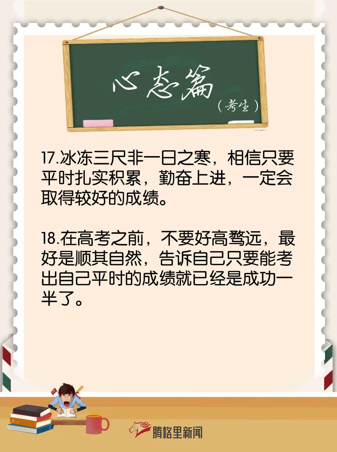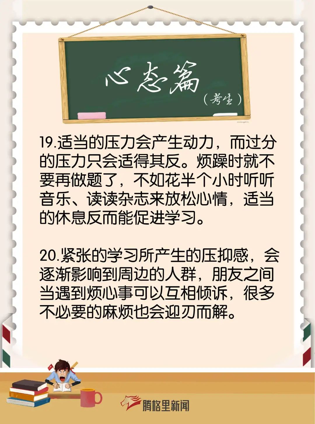 腾格里小编为大家分别整理了给家长和考生们的备考建议、减压方法、考前注意事项及饮食安排,助力2021级考生冲刺高考!