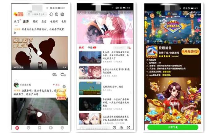 爱奇艺随刻App推荐低俗内容和游戏。制图:黄盛