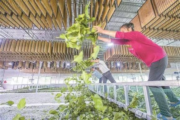 ▲5月29日,在蒙山县新圩镇四联村村集体经济产业园养蚕基地,村民正在喂养桑蚕。近年来,该县积极引导各村因地制宜发展集体经济,目前全县所有行政村集体经济年收入均达5万元以上。黄胜林/摄发布会答记者问(摘选)
