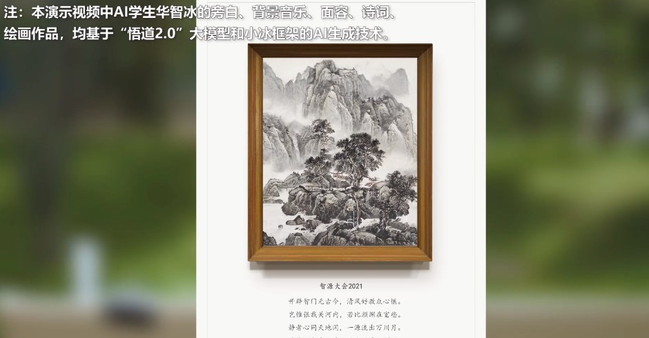 研发团队解释,视频中的场景画面是真人模拟,而AI学生华智冰的旁白、背景音乐、面容、诗词以及绘画作品,则均基于人工智能技术生成。
