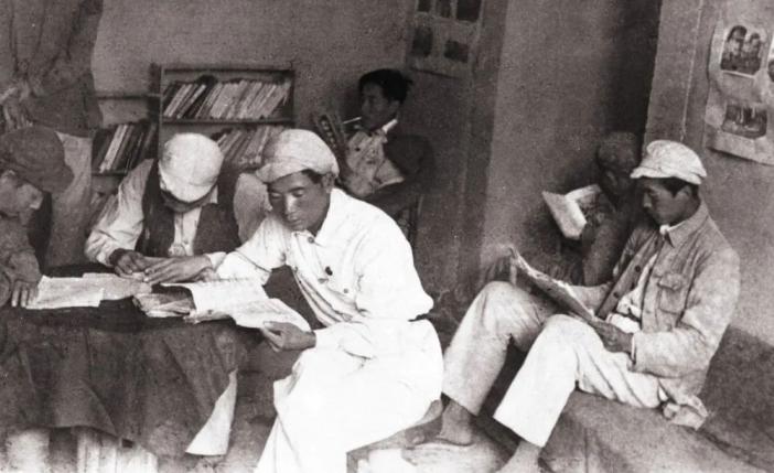 ↑学员们在鲁艺图书馆读书(资料照片)。延安文艺纪念馆提供