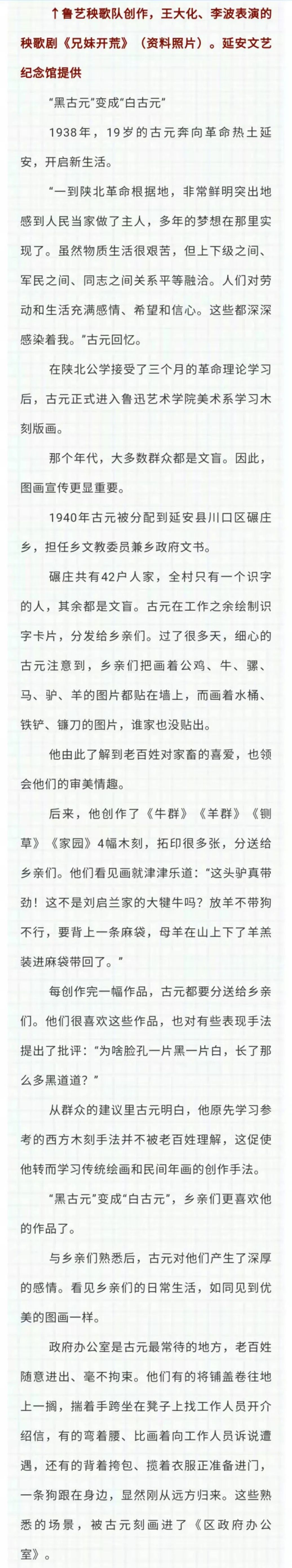 回顾碾庄岁月,古元曾说:“我在碾庄工作和生活将近一年,时间不算很长,但这段过程是非常重要的,使我深切体会到为什么作画和怎样作画,它对于我以后的艺术道路有着深远的影响。”