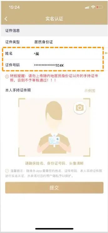 3、手持身份证件实名认证时,个人信息采取脱敏处理,更安全;