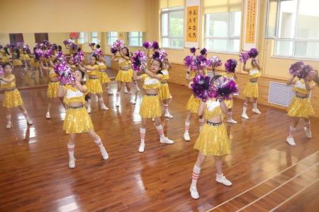 动感衡美社团第一站我们来到了舞蹈室。看!动感衡美社团的小朋友们正在为领导展示她们优美的舞姿,让他们感受到运动与音乐、力与美带来的青春与活力。