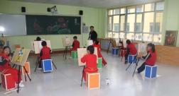 第三站是美术室。为了让学生掌握基本绘画技法,培养学生的气质,陶冶他们的情操,我校特开展美术社团课。看,孩子们在领导的注视中熟练的运用着自己的画笔!