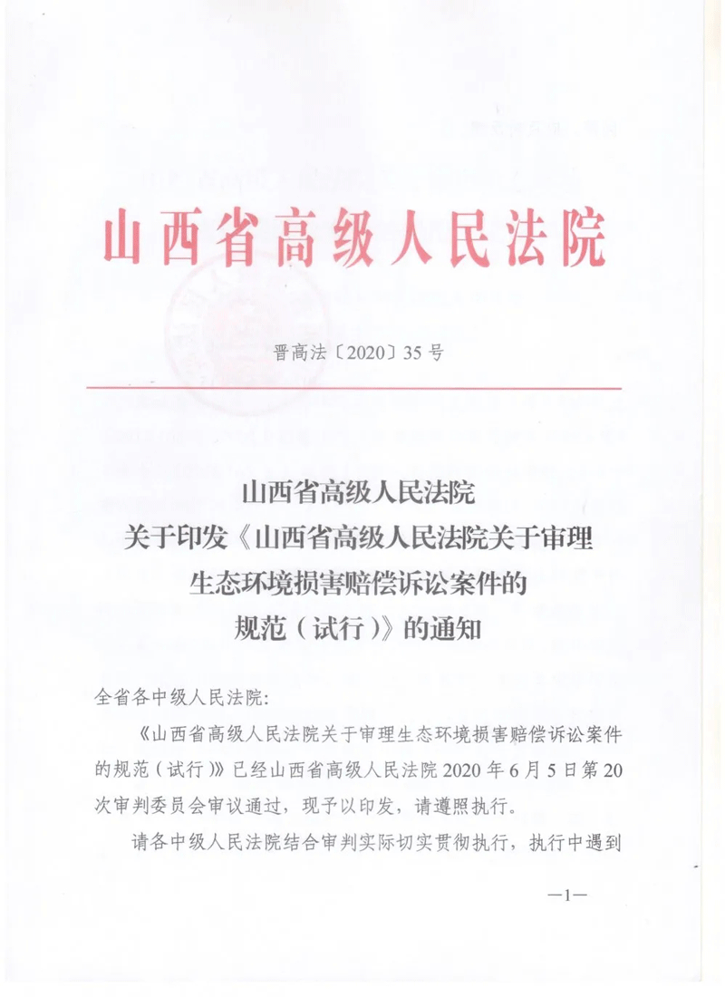 山西省高级人民法院联合多部门出台《关于服务保障黄河流域生态保护和高质量发展加强协作的意见》,建立环境资源审判工作平台,出台《关于加强环境资源审判工作的意见》《关于审理生态环境损害赔偿诉讼案件的规范》。