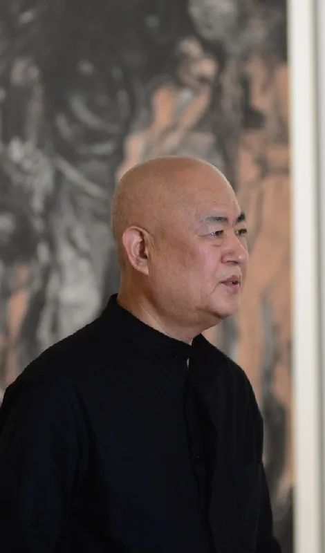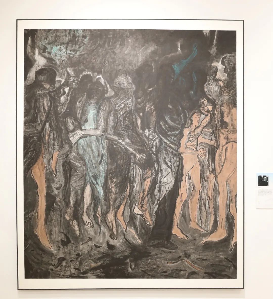 手指画作,刘进安介绍道:“这幅画作名叫《历史》,所展现的是一个抽象虚构的场景。这是我对水墨艺术在表现情感、理想上的一种实践,也是我的主题系列作品之一。画中借用了一些抽象元素和水墨语言,以人物组合的方式使画面和思想达到统一,以表达对人性的感悟。”