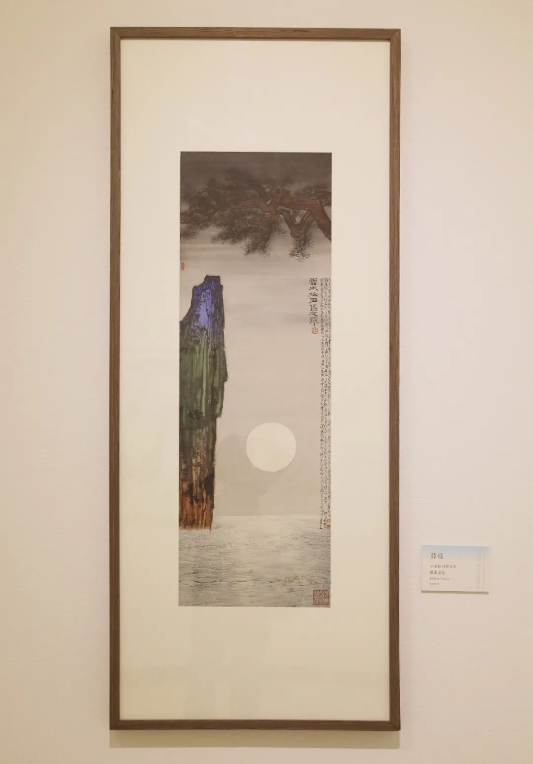 “这次参展,我带来的作品是《王维诗意》和《云水松石皆文章》,你看!在《王维诗意》这幅作品里,我主要运用了水墨的手法,来表现山中雨意,在夜雨过后,山峦树木都沉浸在水溪之中,那样一份静谧、幽邃的感觉。” 薛亮表示,这种构图和意境,既是传统的,也是现代的,同时也融入了他个人的创作特色。