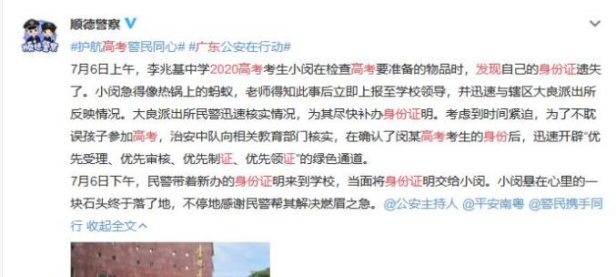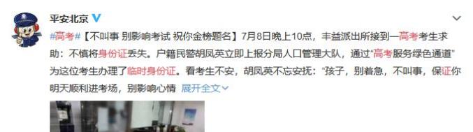 其中,对需要加急申领、换领居民身份证和临时身份证的考生优先受理、优先制证、优先送达。高考期间,各考点警务服务站除及时处理考生报警求助外,还将为居民身份证丢失等有特殊原因的考生,加急办理考生临时身份证明,保证考试顺利进行。