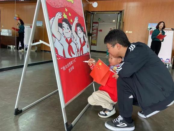 我向党旗敬个礼党旗的红色象征革命,黄色的镰刀和锤头,象征着中国共产党是中国工人阶级的先锋队,代表着工人阶级和广大人民群众的根本利益。中国共产党从1921年成立以来,为了求得民族独立和人民解放,实现国家的繁荣富强和人民的共同富裕,已经走过了100年艰辛而辉煌的历程……”随着工作人员的讲解,在“童心签到墙”处,孩子们和爸爸妈妈一起签写下自己的姓名,并庄严的向党旗敬礼;各位党员同志纷纷将自己想说的话贴到了“向党说句心里话”的展墙上。