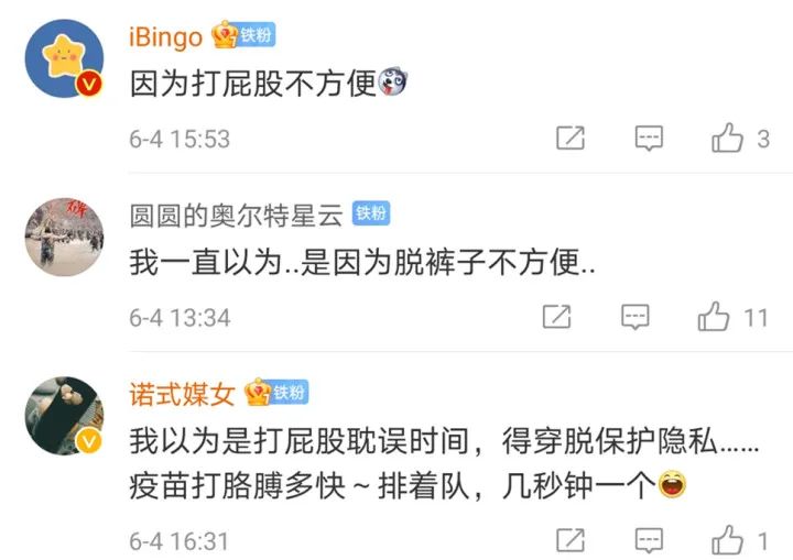 有的网友怕疼觉得疫苗打屁股上躺着睡不着......
