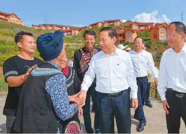 5月31日,省委书记彭清华到峨边县新林镇茗新村调研,察看村容村貌,看望已脱贫群众(四川日报全媒体记者欧阳杰摄,图片来源:四川日报)