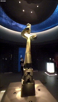 纵目面具参与布展的三星堆博物馆陈列保管部工作人员刘毓介绍道,三星堆博物馆一共过来61件文物,其中最吸引人眼球的是大立人像和纵目面具,这两件文物在当年考古发现中也引起比较大的轰动,也是三星堆博物馆的镇馆之宝。其铸造工艺体现了三星堆文明非常高的铸造水平以及三星堆独特的文化内涵。无论是从体量、学术研究价值上,都有很重要的地位。