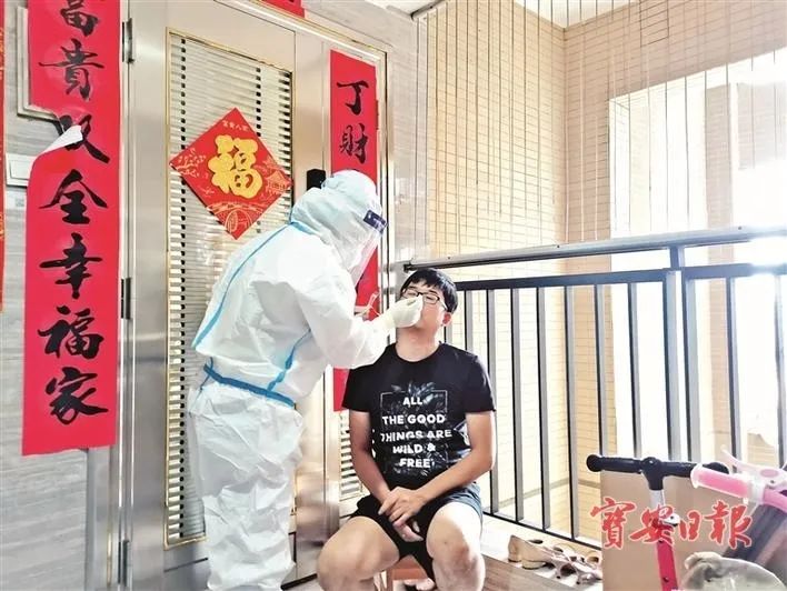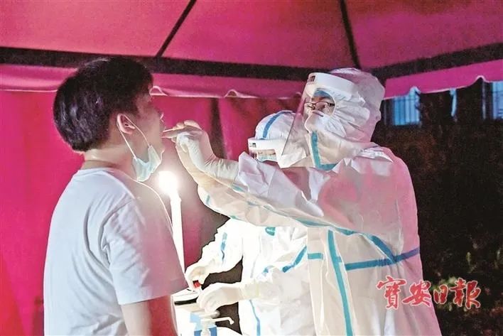 宝安的医护人员为市民进行核酸采样。快递小哥、外卖小哥总是行色匆匆,用脚步跑出了城市的“烟火气”。连日来,市市场监督管理局宝安监管局工作人员跟着小哥们的电动车跑,一番细致讲解、耐心劝导下来,宝安快递员、外卖员都接受了核酸检测,保障市民都市便捷生活不因疫情防控“梗阻”。