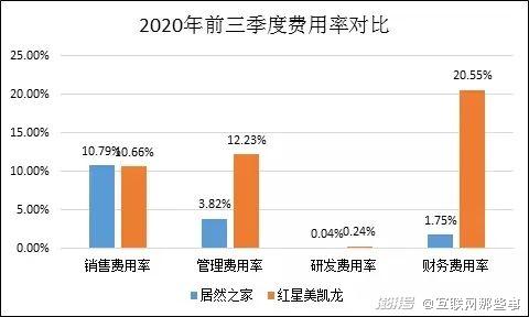 2020年全年,红星美凯龙的营业成本达到了54.8亿,其中管理费用高达16.81亿,而在疯狂扩张的元年(2015),红星美凯龙的营业成本不过22.41亿,管理费用仅7.422亿。而红星美凯龙的宿敌—居然之家,在管理费用与财务费用率等维度的优化控制能力上,明显甩了美凯龙几条街。