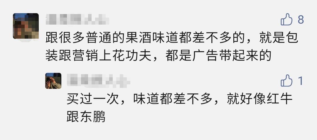 网友对某款女生酒的评价。女生酒靠精美包装和走心营销带来的风起云涌,与当年靠文案杀出一条路的江小白如出一辙。