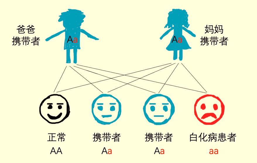 白化病基因属于隐性基因,小美从父亲和母亲那里分别遗传了一份白化病基因,导致2份基因都失去功能而患病,小美的父母虽然都是携带者,但他们体内都有另一份正常基因行使功能,因而不会发病。