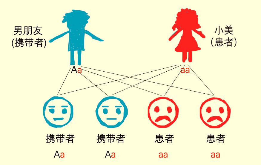 场景二小美男朋友是携带者,红灯亮起,小美与男朋友的后代,有1/2的概率是白化病患者,另外1/2的概率是携带者,必须干预,干预的方法可以自怀之后抽羊水做基因检测,也可以做三代试管,直接挑选不会患病的胚胎移植。