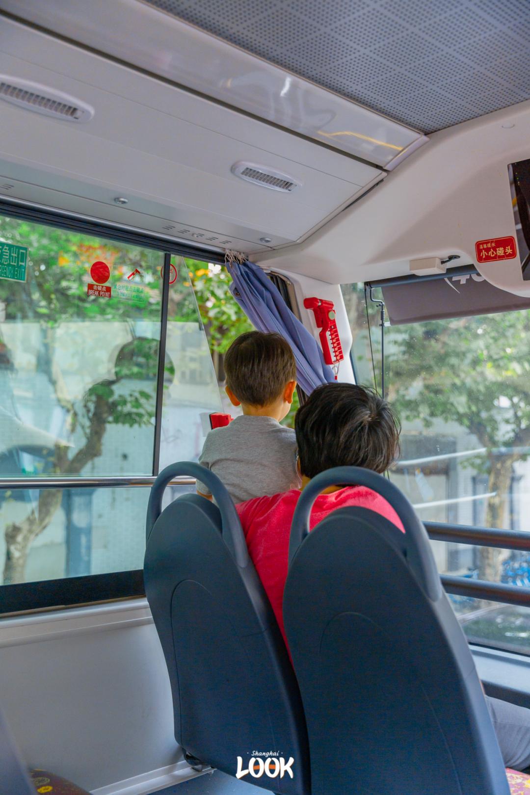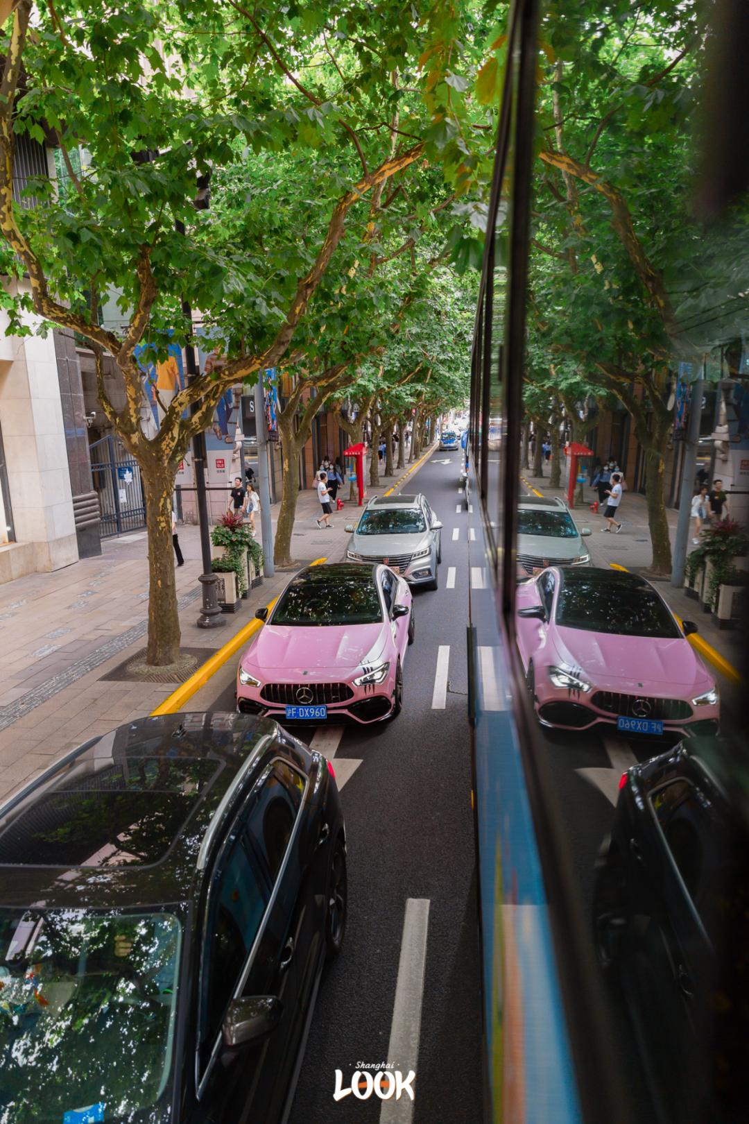 整辆车的「VIP专座」属于前排的4个位置,平日高高在上的梧桐树叶变得触手可及,热闹街景和安静小马路都尽收眼底。