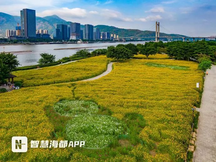 今年春天,福州乌龙江公园沙滩公园也播种了硫华菊。专家表示,硫华菊对福州气候适应能力很强,不容易受到病虫害的影响,因此成为最适合打造花海的植物。
