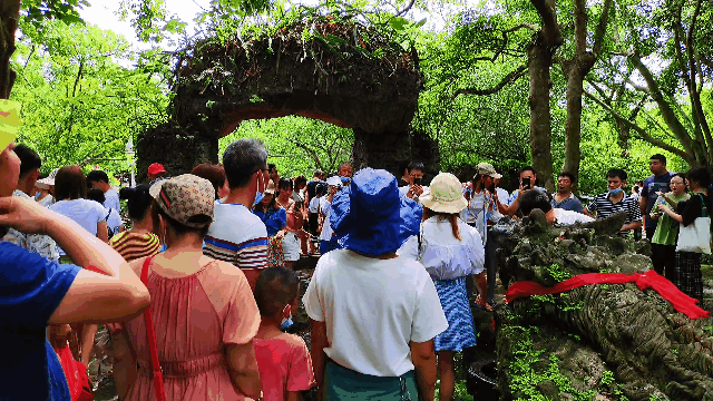 穿过亲子乐园向火山口龙头福地进发,一场热闹非凡的传统文化仪式——“跨石门、洗龙水、免费领粽子、登山祈福”火山民俗盛宴,成了当地人与游客体验“端午”互动的欢乐之地。当天,在公园石门“龙头”处,景区用槟榔花、野菠萝花、艾草等植物浸泡的龙水,为众人祈福,市民游客争相跨“石门”,摸“龙头”,洗“龙水”,登上海口制高点,欢度传统佳节。