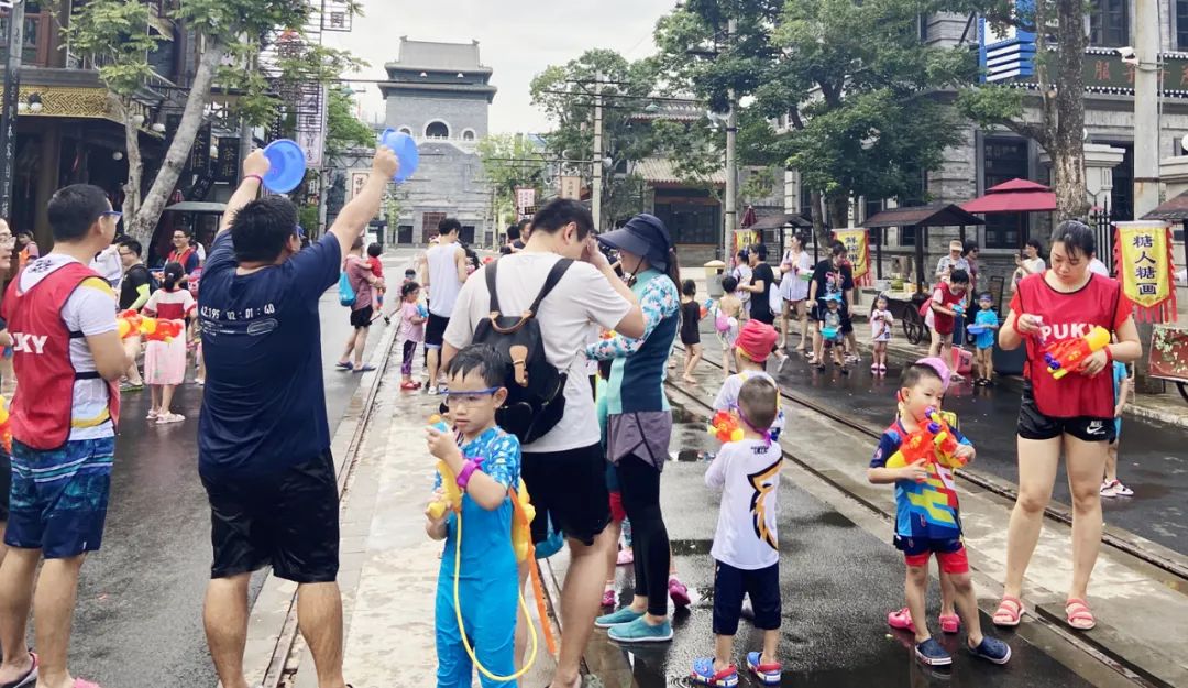 水枪大战、泡泡狂欢、彩色攻击、泼水大战、竹竿舞、旱地龙舟……端午期间,在观澜湖华谊冯小刚电影公社,市民游客互动共享欢乐。乘兴而来的游客们在电影公社里倾情投入,尽享清凉无比、趣味无穷的端午假期“粽”情狂欢。“游玩项目很精彩,我们玩得也开心。”来自河北邢台的游客郑艺芳高兴地说。