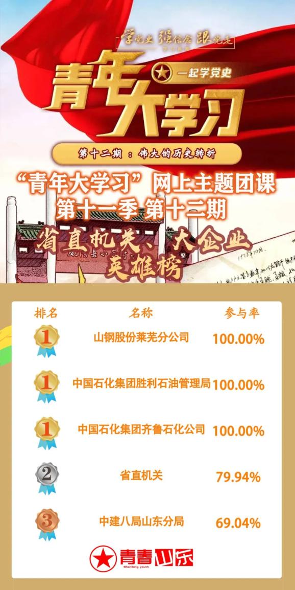大企业层面,山钢股份莱芜分公司继续以绝对优势荣登榜首,中国石化集团胜利石油管理局反超中国石化集团齐鲁石化公司荣获亚军,中国石化集团齐鲁石化公司以微小差距暂列第三。