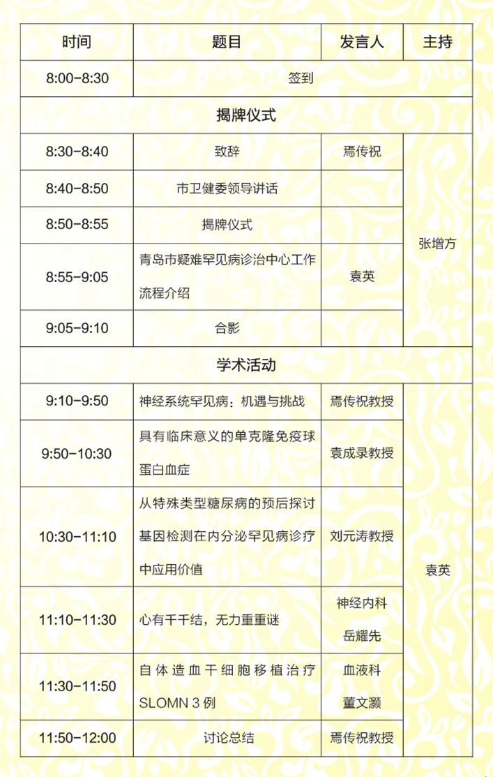 随着社会经济的发展和人们对健康需求的提升,疑难罕见病越来越受到人们的关注。疑难罕见病诊疗困难,治疗成本高,患者往往多方求医、花费巨大却得不到规范、有效诊治。为了促进青岛市疑难病、罕见病的规范化诊治,让岛城老百姓在家门口解决疑难罕见病,经青岛市卫生健康委员会批示,山东大学齐鲁医院(青岛)联合青岛市多家医院的多个学科,成立“青岛市疑难罕见病诊治中心”。届时将同时举办首届青岛市疑难罕见病学术研讨会,邀请疑难罕见病相关专业专家进行专题报告,提供与之相关的疑难病例进行讨论。