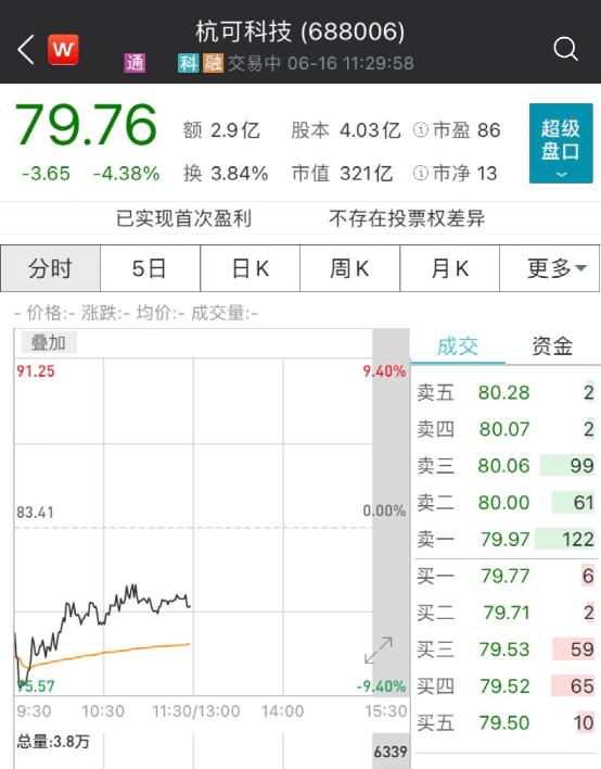 受消息影响,杭可科技盘中一度跌超9%,截至午间收盘,该股跌幅收窄至4.38%,报79.76元,总市值321亿元。