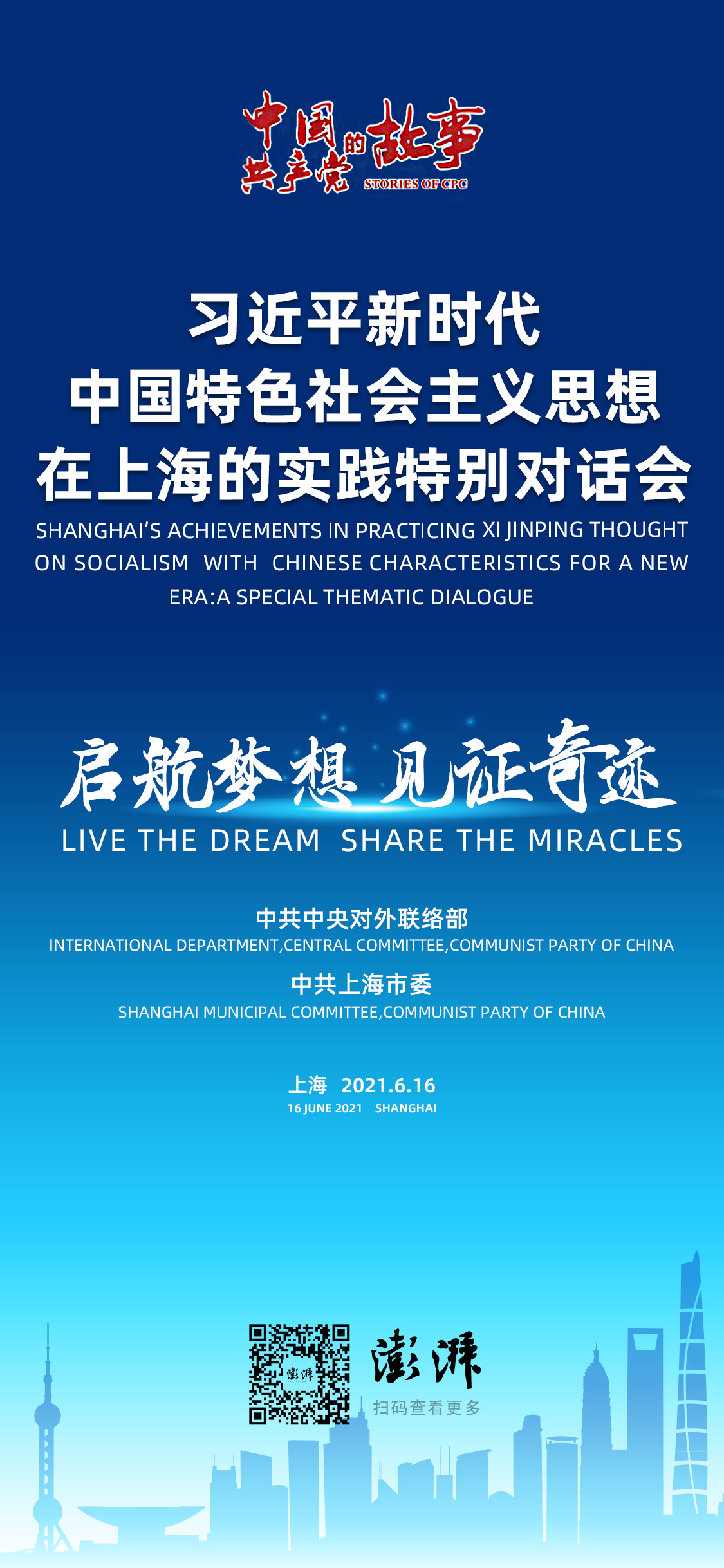 6月16日,由中共中央对外联络部和中共上海市委共同主办的“中国共产党的故事——习近平新时代中国特色社会主义思想在上海的实践”特别对话会在上海举行。此次特别对话会以“启航梦想 见证奇迹”为主题。