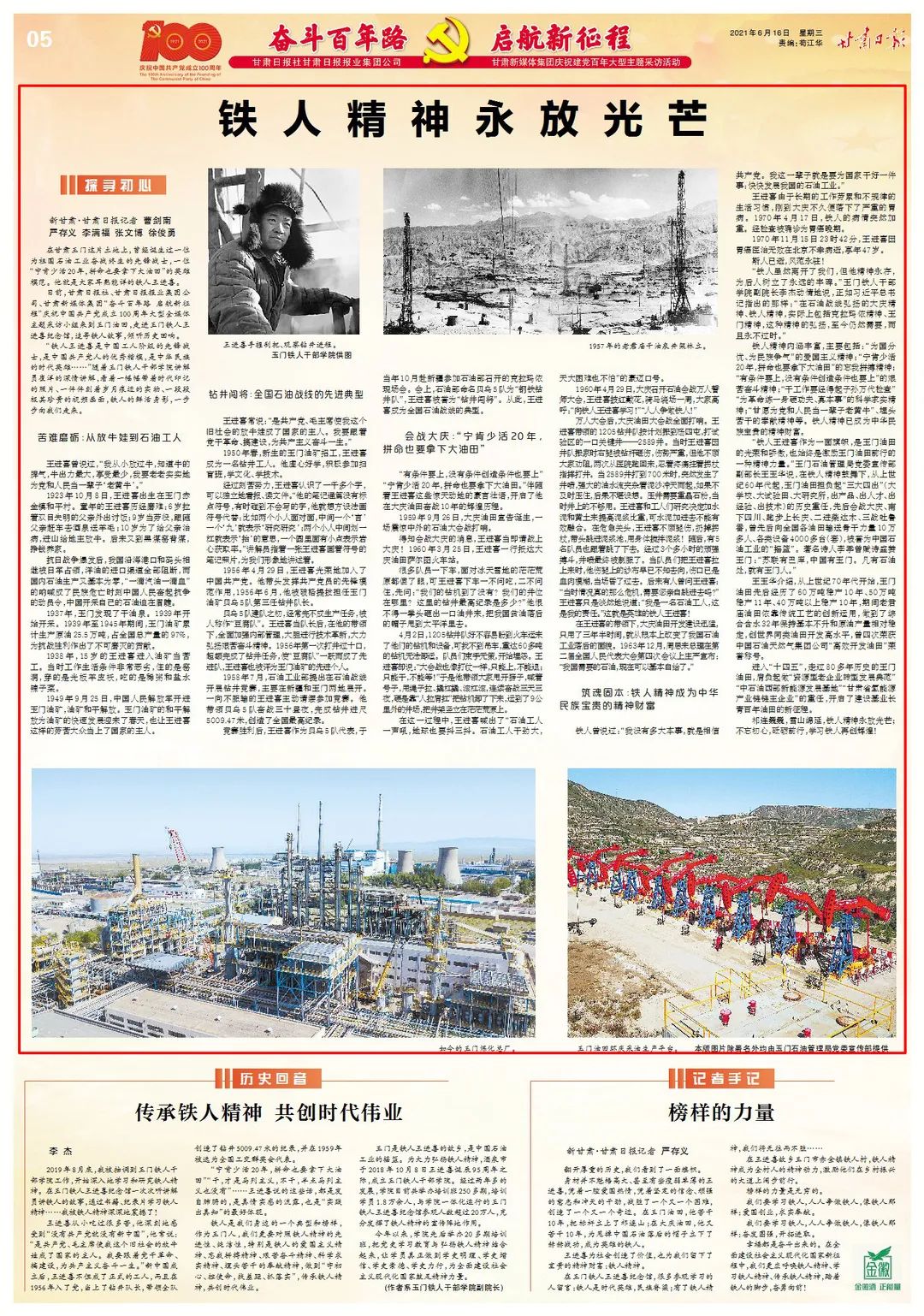 日前,甘肃日报社、甘肃日报报业集团公司、甘肃新媒体集团“奋斗百年路 启航新征程”庆祝中国共产党成立100周年大型全媒体主题采访小组来到玉门油田,走进玉门铁人王进喜纪念馆,追寻铁人故事,倾听历史回响。