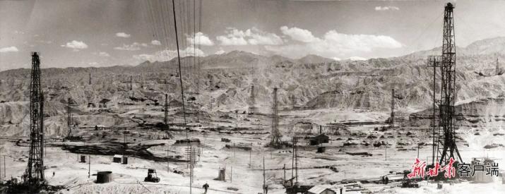 1957年的老君庙干油泉井架林立。钻井闯将:全国石油战线的先进典型