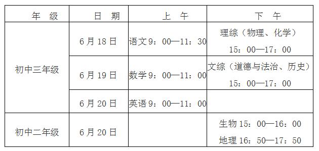 道德与法治、历史、地理三科实行开卷考试,其它各科实行闭卷考试。