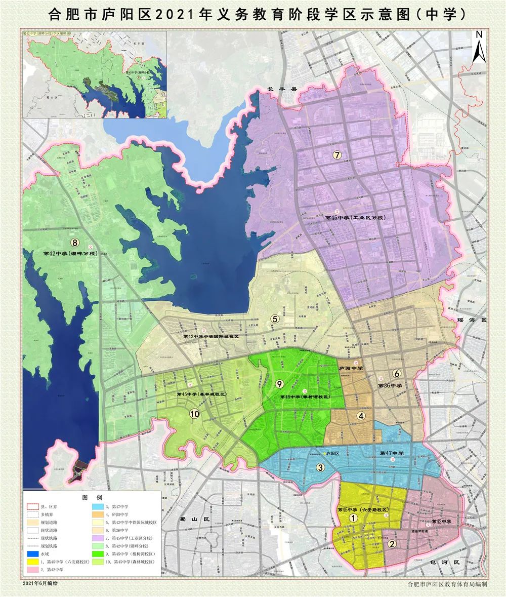20.合肥市第四十六中学:庐州大道以西,方兴大道以北,玉龙路以东,紫云路以南(不含观湖苑)。