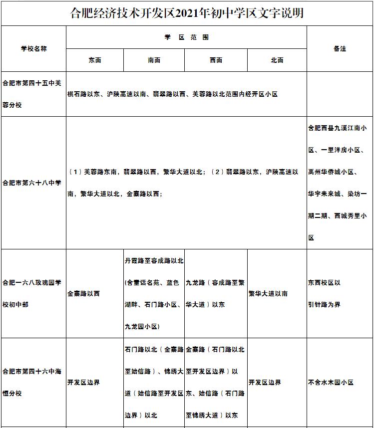 合肥高新区2021年各中学学区范围