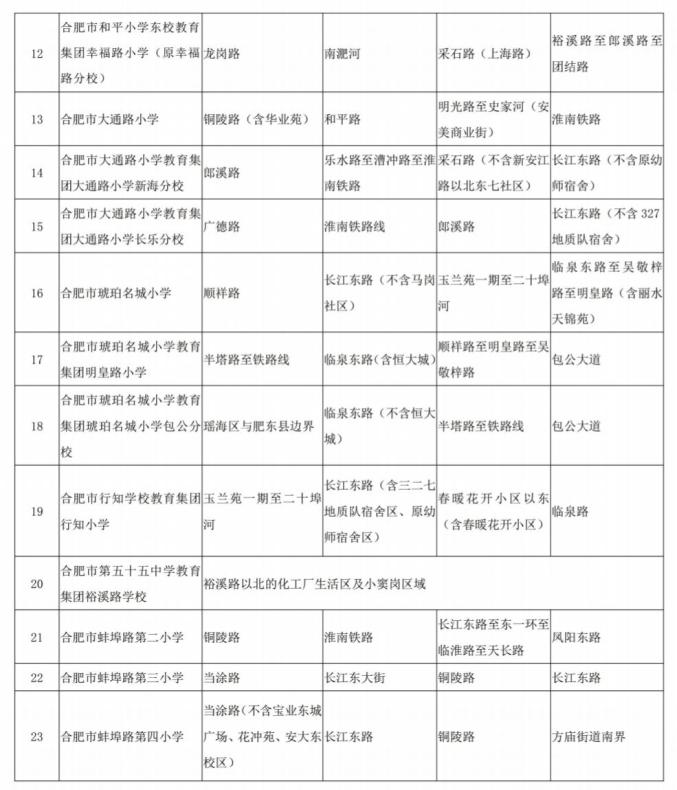 20.合肥市屯溪路小学教育集团西递小学:宿松路以西,阊水路以北,关麓路以东,南二环路以南。