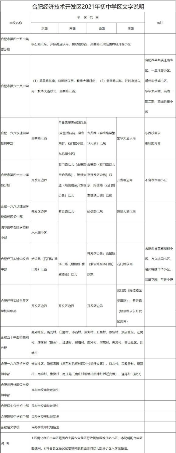 经开区2021年中学学区说明