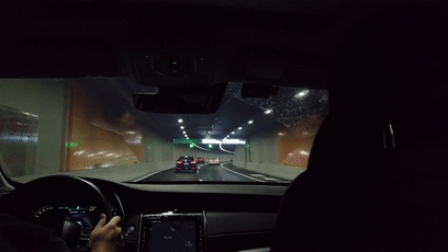下午3点整,在长宁交警支队民警的指引下,位于北虹立交处的北横通道入口开放迎接首批通行车辆,“宁宁”乘坐车辆便位列其中。进入隧道后,车辆沿着整洁平坦的道路行驶,可以看到路面为西向东两车道,四周配备了醒目的道路交通标识。除此之外,隧道内还出现了极具特色的靓丽灯光景观带,通过绚丽的灯光效果呈现出1921年至2021年间,具有上海特色的标志性建筑,其中包括东方明珠、石库门、上海中心等。
