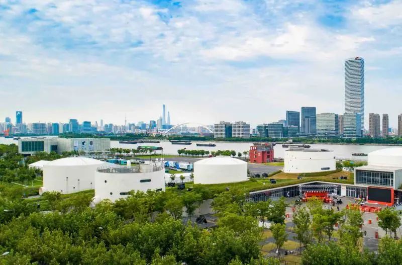 更难得的是,沿岸超过百年的工业遗存,几乎得以全部保留并活化利用:昔日“远东第一”的龙华机场成为跑道公园;北票码头保留下煤漏斗,码头原址建起人们耳熟能详的龙美术馆;上海飞机制造厂的厂房变身西岸艺术中心;甚至飞机航油的储油罐,也改建成了开放式的上海油罐艺术公园……