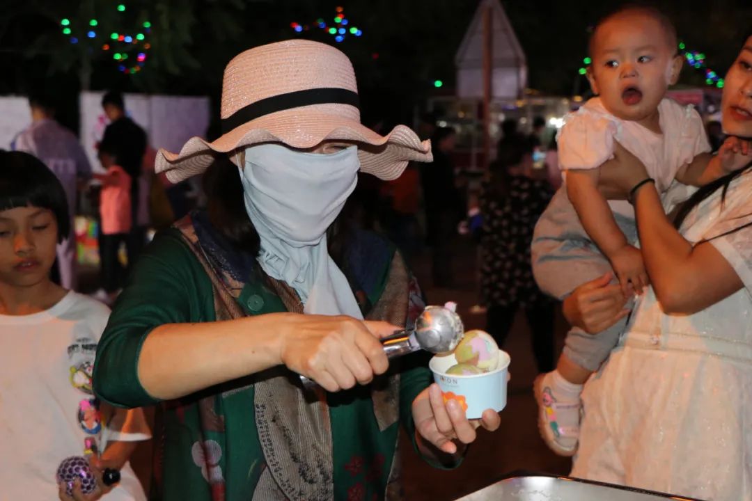 与此同时,活动现场更是集结了海鲜烧烤、冰爽冷饮、炸串儿涮串儿等各种特色小吃,蒸煎炸煮,飘香四溢。整条街道上人头攒动,热闹非凡,每个摊位前都挤满了客人,川流不息的人群沉浸在美食盛宴中,欢乐的气氛弥漫着整条街道。