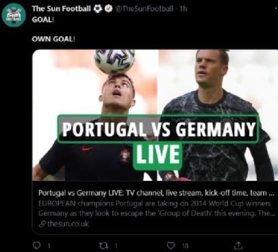 不少足球体育网站对葡萄牙的这两记连续乌龙进行了报道。↓