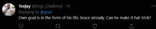 “乌龙球已经成为他的生命形式和支柱。能来个帽子戏法吗?”