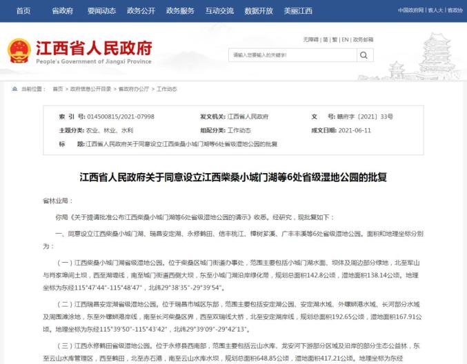 原标题:《江西新增6处省级湿地公园!在你家附近吗?》