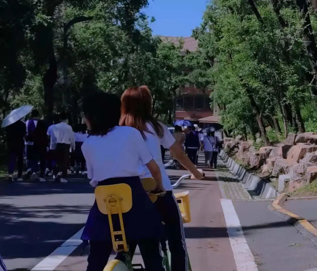 走得累了,与挚友在路边的小卖部买块雪糕,在凉亭里稍作休息,看着熙攘的人群,体会着出游的快乐。时不时有骑着自行车的同学从身旁路过,打声招呼,而后继续赶路。
