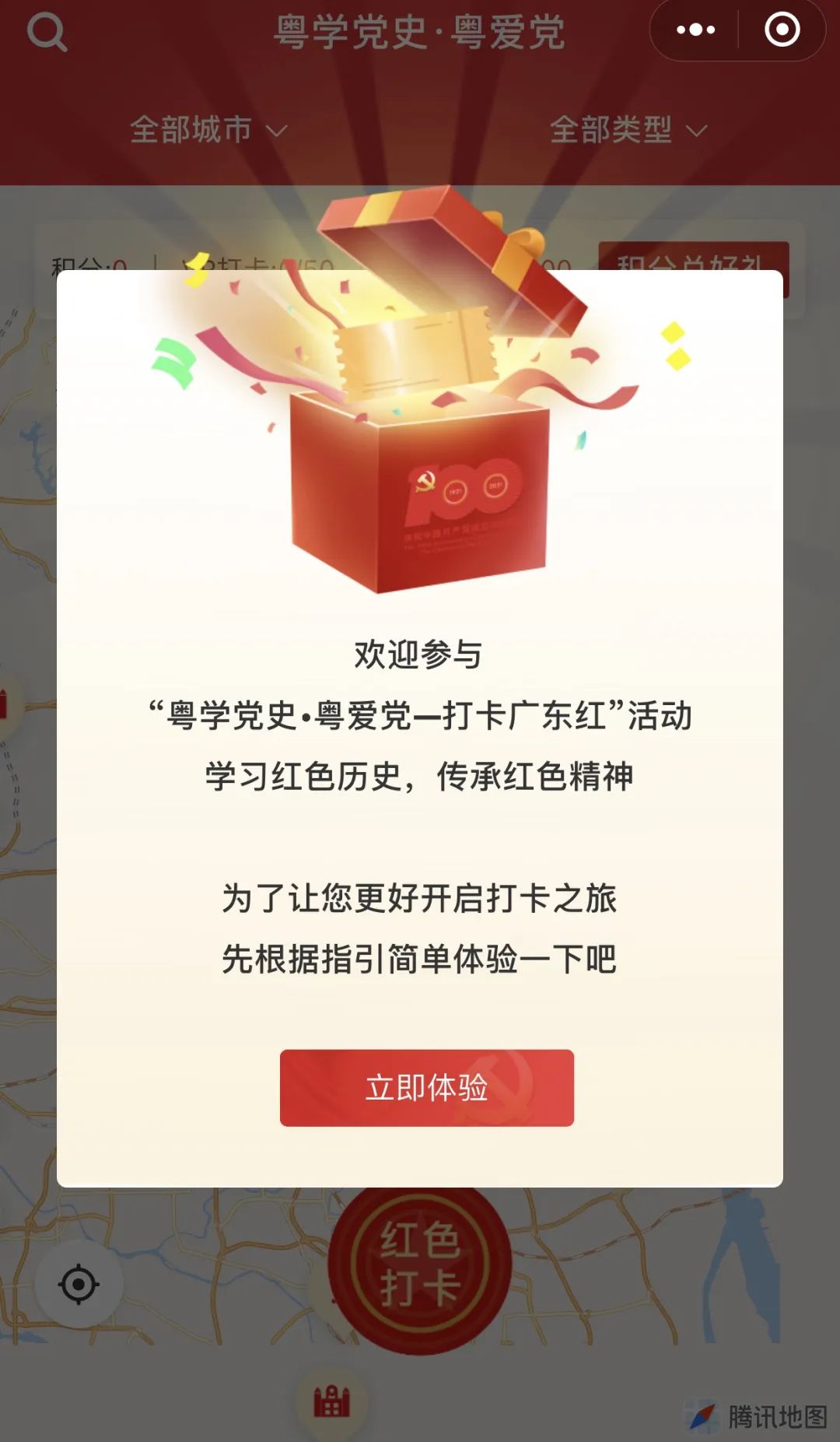 “粤学党史·粤爱党一打卡广东红”是全国推出的第一个省级线上线下融合智媒党史学习平台,开发了第一个全省全域高精度手绘红色地图,第一个实现全省红色地标精准导航。首期上线集纳100个重要革命遗址、重大事件发生地、革命纪念馆等红色地标。