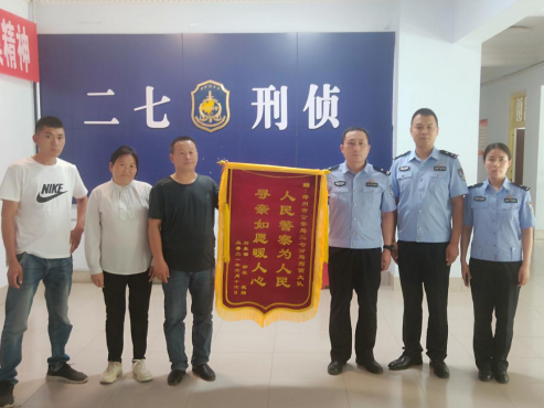 认亲归来的刘某部特意为二七刑侦送上写有“人民警察为人民,寻亲如愿暖人心”字样的锦旗,以表达他们夫妇最深切的感激之情。(图文:郑州市公安局二七分局 张沙沙、李元伟)