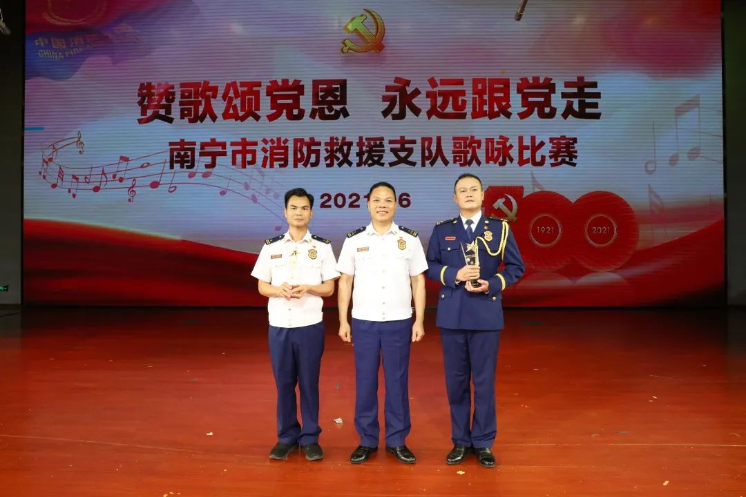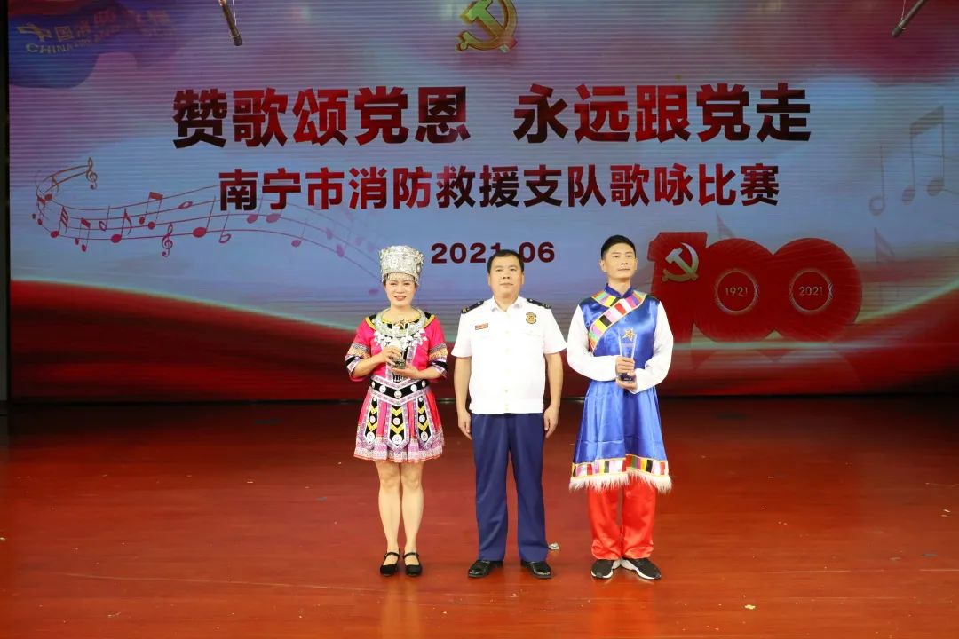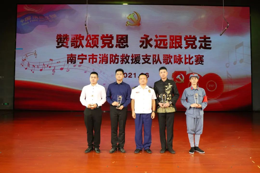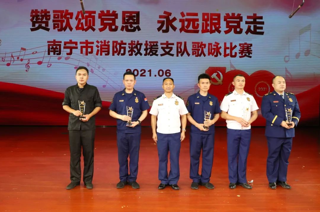 为庆祝中国共产党成立一百周年,深入开展党史学习教育。6月17日下午,南宁消防在南宁市群众艺术馆礼堂隆重举办“赞歌颂党恩、永远跟党走”歌咏比赛,全市16支参赛队伍参加比赛。活动邀请广西艺术学院声乐教师蔡恒、魏文文等5位指导老师作为评委,支队在家党委委员、全体指战员、专职消防员、文员以及共建单位共600余人到场观看。