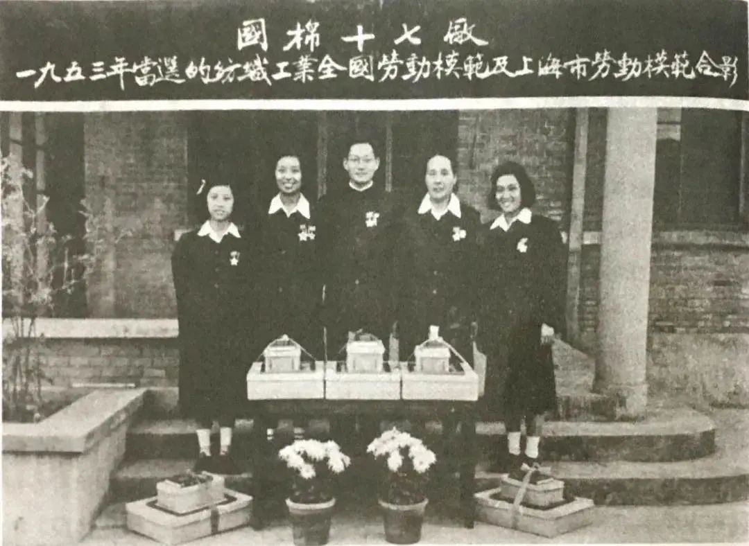 1953年,黄宝妹(左二)获评纺织工业部劳动模范1953年-1959年期间,黄宝妹曾多次获得包括:“上海市劳动模范”“全国劳动模范”“全国青年社会主义建设积极分子”等在内的多项荣誉表彰。