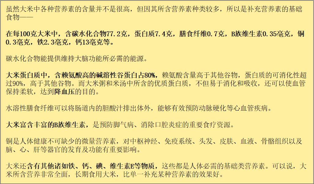 在《大米比药好》一书中,中医博士栾加芹、宫锦汝是这样介绍大米的: